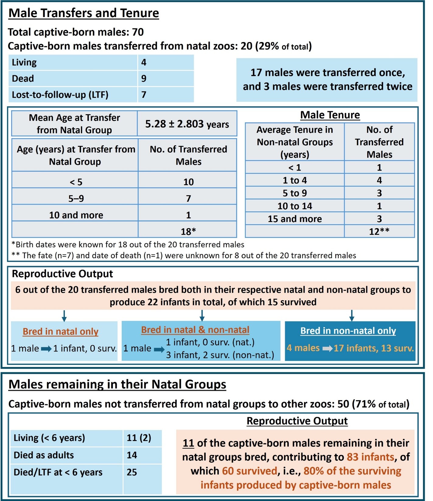 Figure 10: Male transfers and reproductive output of captive lion-tailed macaques in Indian zoos.