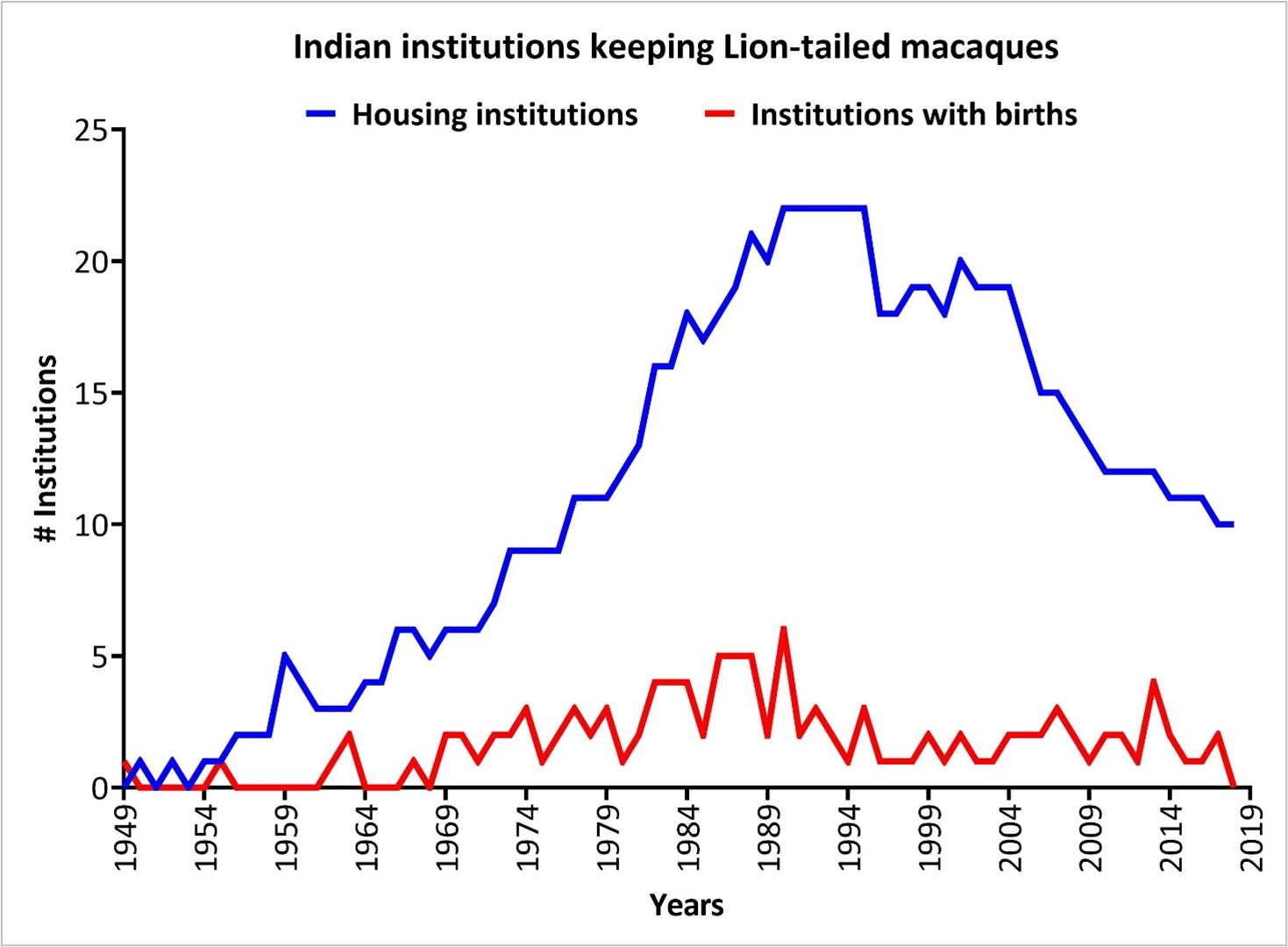 Figure 7: Indian institutions keeping lion-tailed macaques and recording births of individuals.