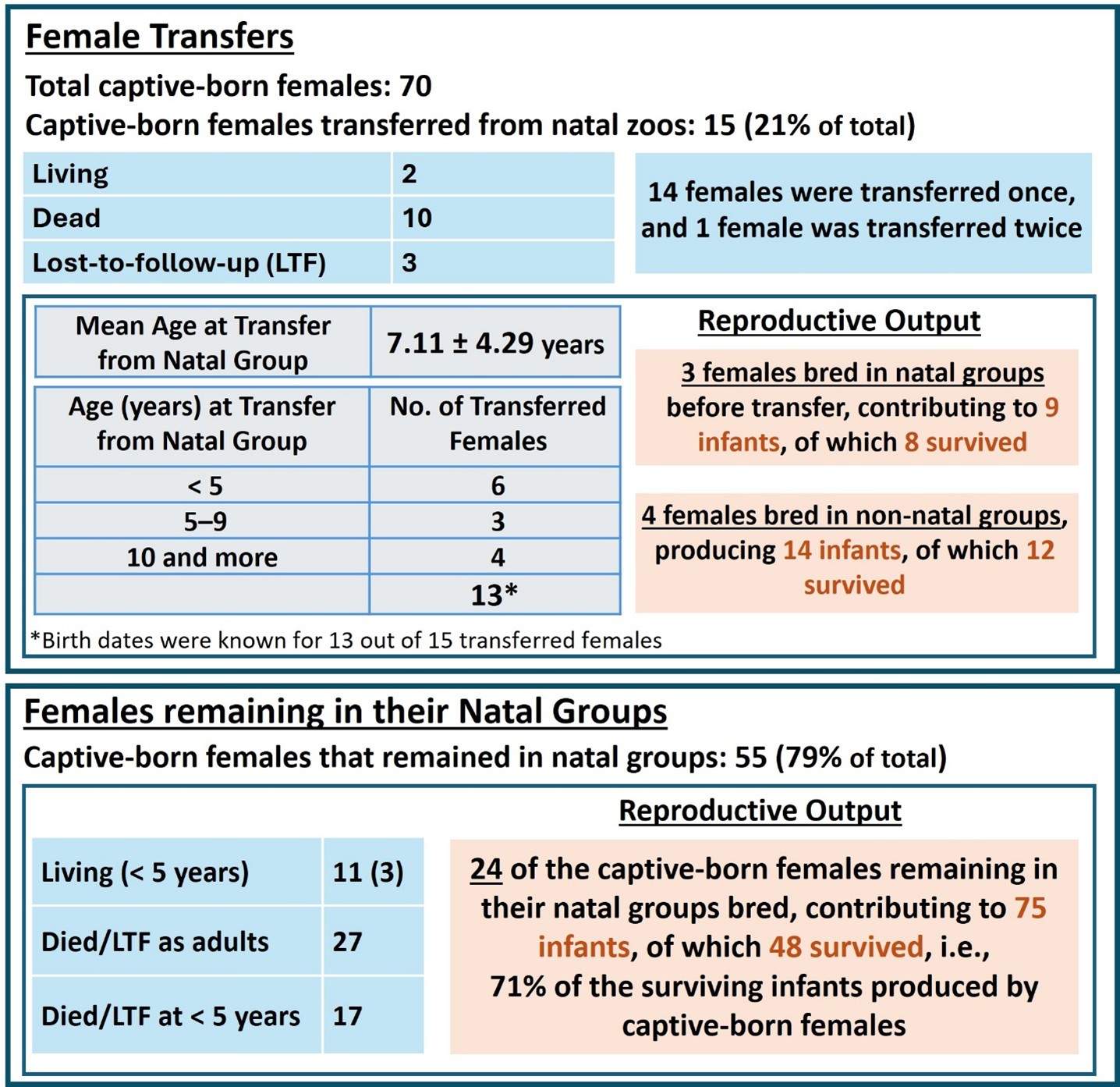 Figure 9: Female transfers and reproductive output of captive lion-tailed macaques in Indian zoos.