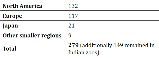 Table 1: Transfer of wild-caught individuals to zoos outside India between 1899 and 2018.
