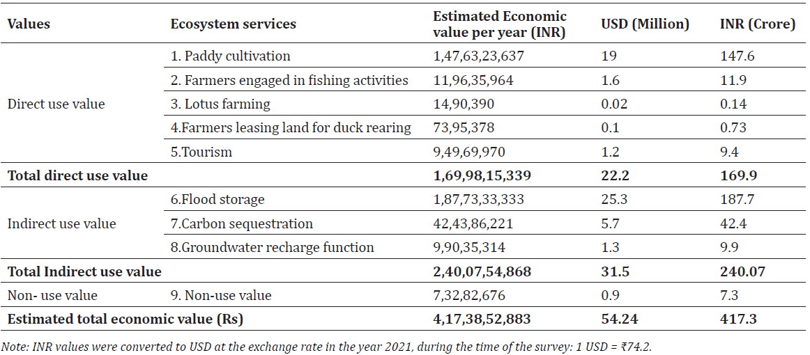 Table 4. Total Economic Value of all direct use, indirect use and non-use values of the Kole wetlands, Kerala, India.