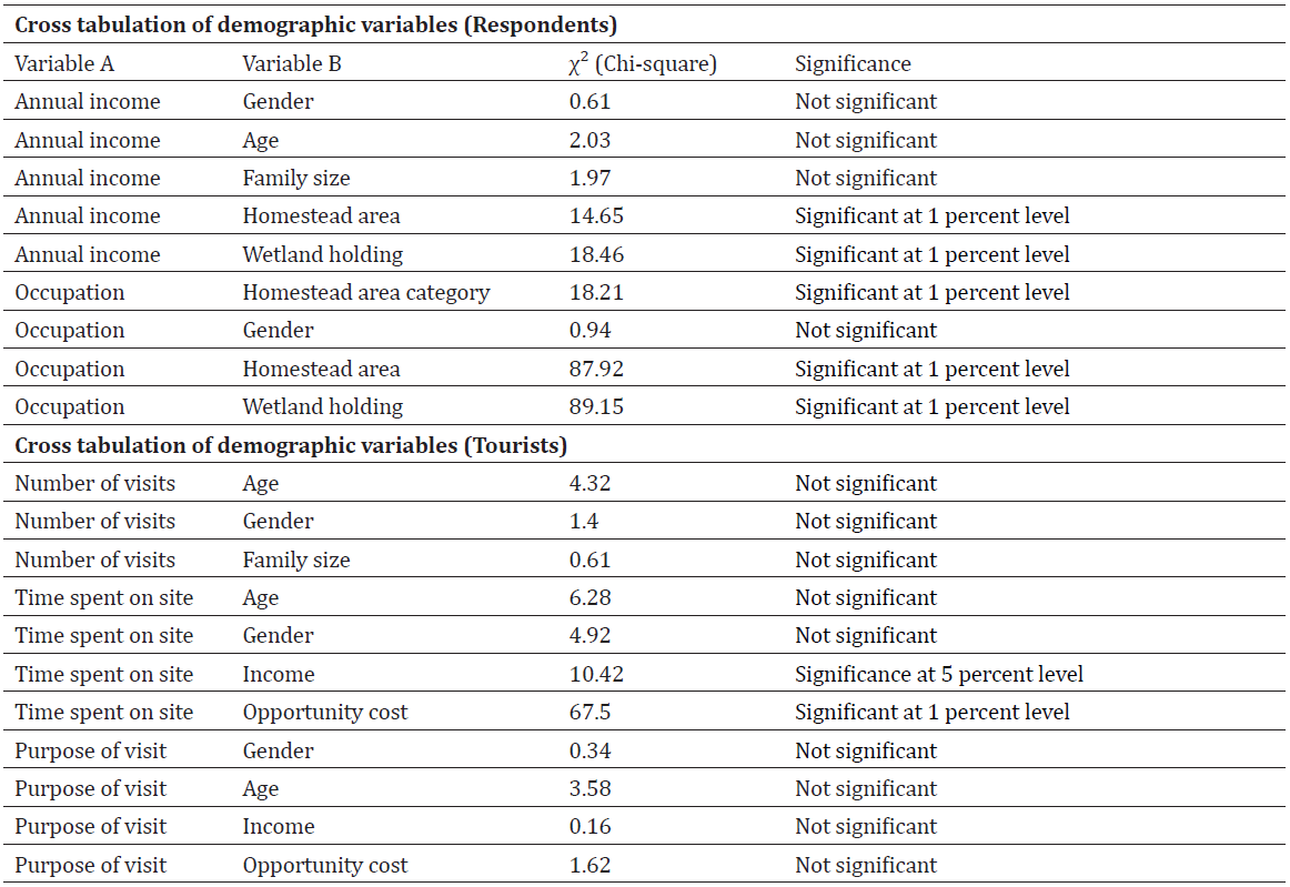 Table 3. Cross-tabulation of the demographic variables and corresponding chi-square test values to understand their associations at the Kole wetlands, Kerala, India.